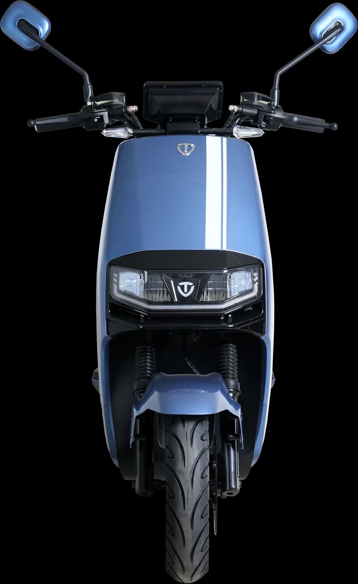 Premium electric motorcycle with a 2000W motor and 72V35Ah graphene battery delivering 100 km range. The F51L stands out with 90/70-12 tubeless tyres for exceptional road grip and a bold sporty design. AM license required.